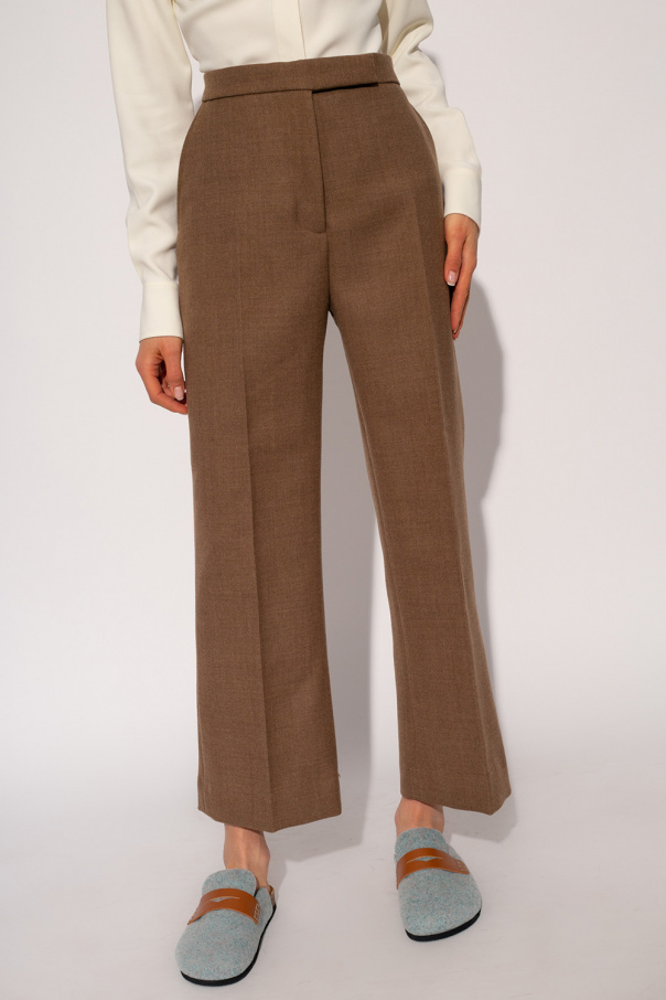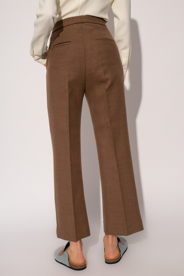 Brown trousers from Toteme. Made of wool, this straight leg design is complete with a zip and hook closure and four slip pockets.