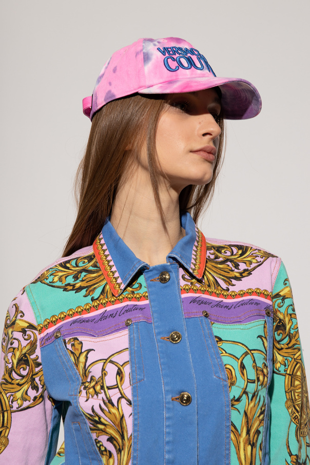 Multicolored baseball cap from Versace Jeans Couture. Crafted from cotton, this item features a tie-dye effect, blue logo embroidery and adjustable buckle strap at the back.