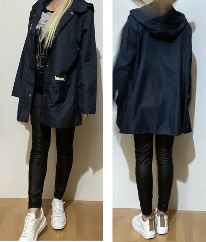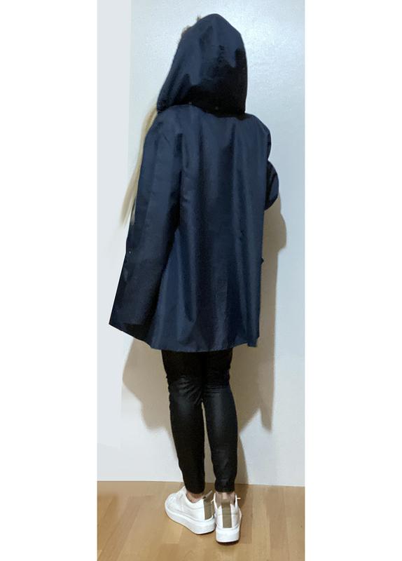 Плащ жіночий прямий фасон вище коліна з капюшоном темно-темно-синій.