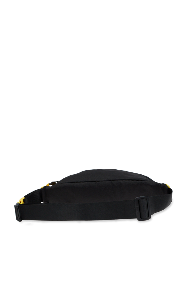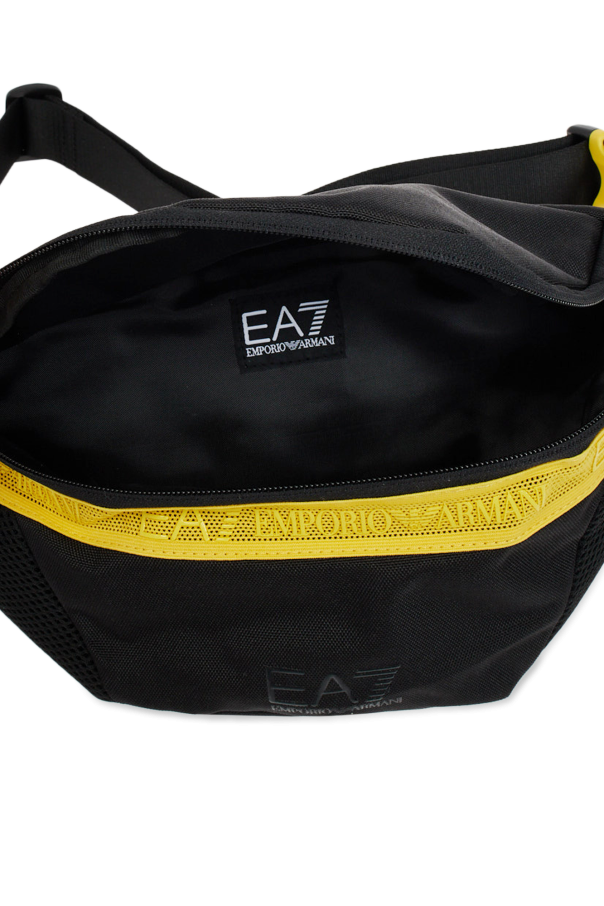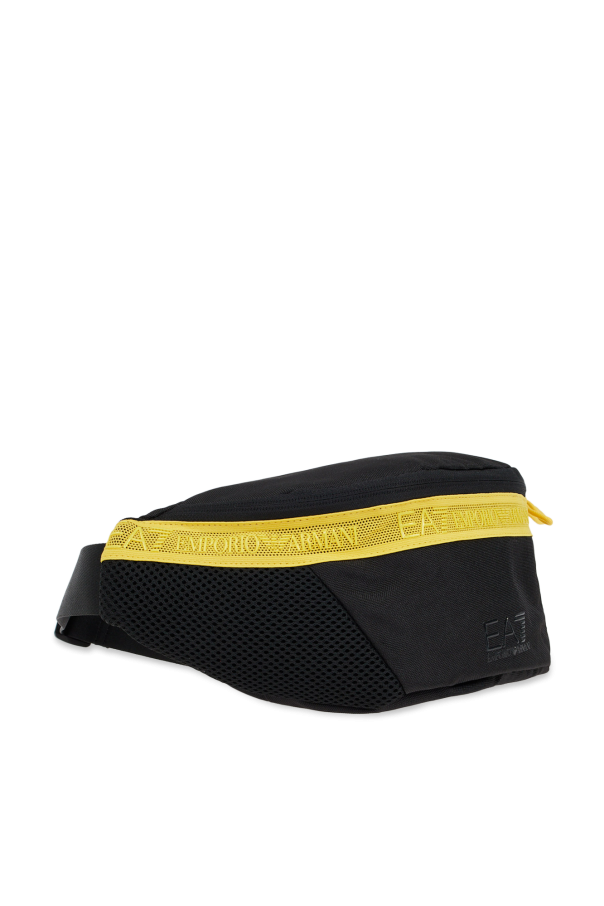 Black belt bag from EA7 Emporio Armani. Made from recycled material, this style item fastens via a two-way zip with a logo and showcases a yellow strap with a logo, one internal compartment and an adjustable strap.