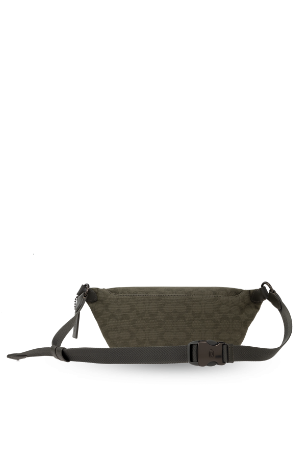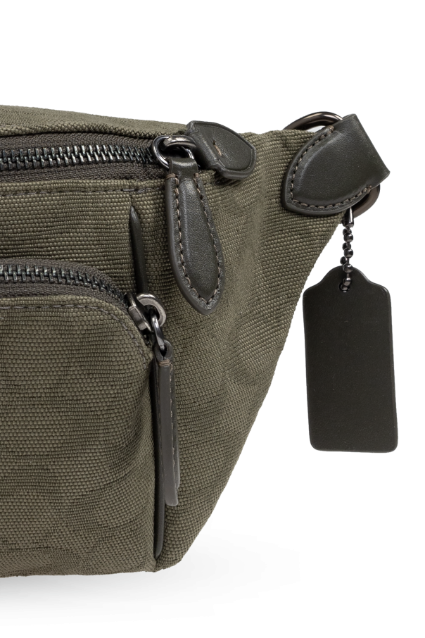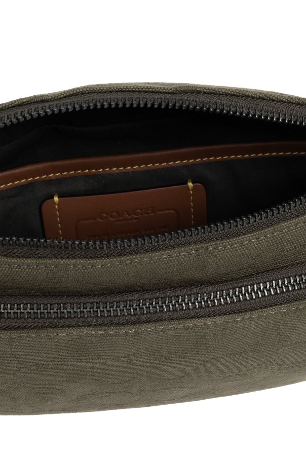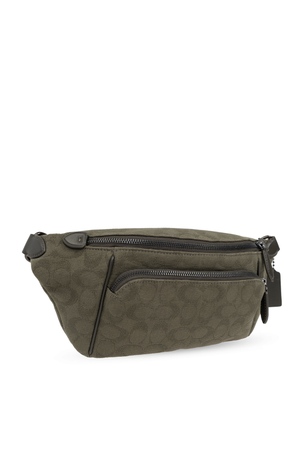 Introducing the epitome of sophistication and functionality - the Coach Waist Bag in an elegant khaki green. Crafted with precision, this accessory marries a compact and streamlined silhouette with softly rounded edges, exuding an air of refined simplicity. The bag’s surface is adorned with a subtle, repetitive monogram pattern, a distinctive hallmark of luxury. Made from premium-quality, durable canvas with a finely textured finish, it promises not only style but longevity. The attention to detail is evident in its functional elements, including a main zippered compartment and a front zip pocket for easy access to essentials. The adjustable strap with a secure closure allows for versatile styling, while leather accents on zipper pulls and possibly the brand logo on the internal label, alongside a branded tag, underscore its exclusivity. Internal branding, visible on the main compartment\'s inner side, attests to the bag’s authenticity and its alignment with the standards of exclusive brands. Its practicality is enhanced by multiple pockets and robust construction, typical of luxury items. Why Choose This Product? Exquisite craftsmanship and high-quality materials ensure durability and style. The luxury monogram pattern and leather details add a touch of elegance. Functional design with multiple pockets for organized storage. Versatile wearability made possible by the adjustable strap. A testament to authenticity with branded internal labels.