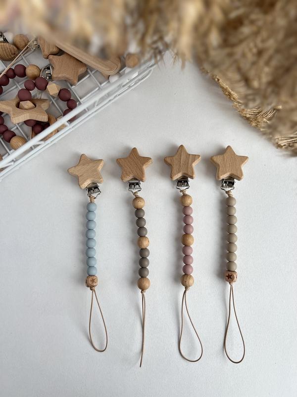 Тримачі для сосок/дурників, що поєднують в собі дерев’яні та силіконові елементи. Дуже гарної якості. Силікон харчовий!!!
