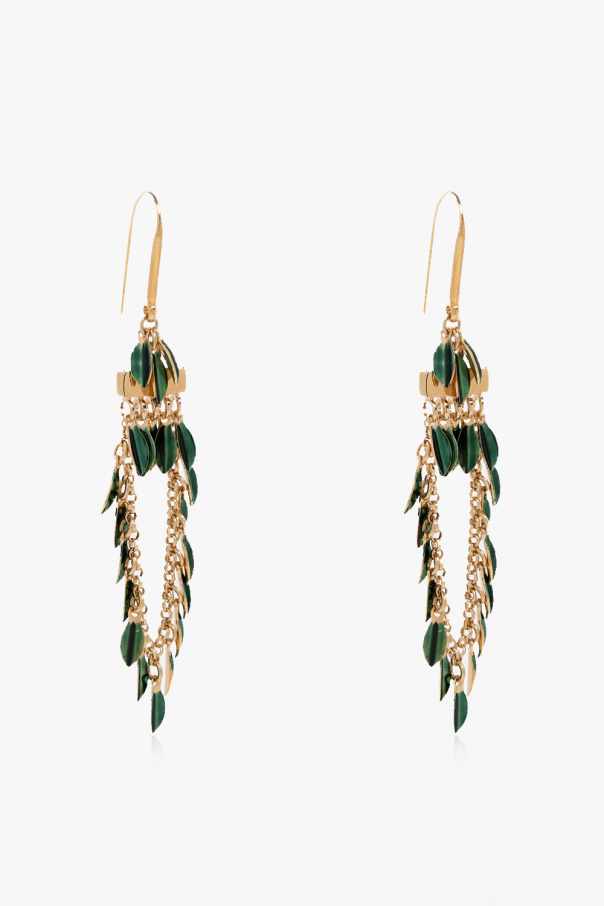 Gold-tone drop earrings with a green leaf charm and engraved logo from Isabel Marant. Made of brass.