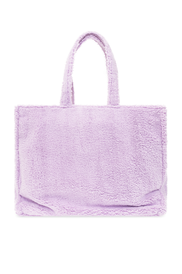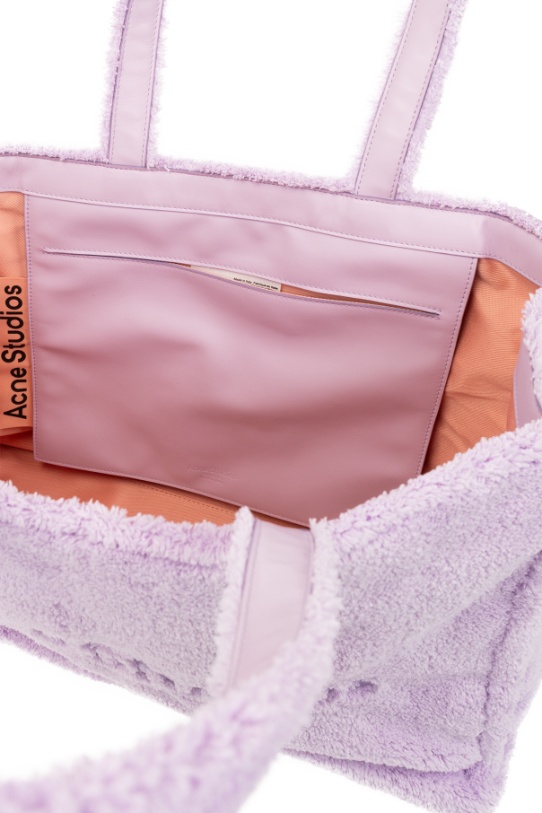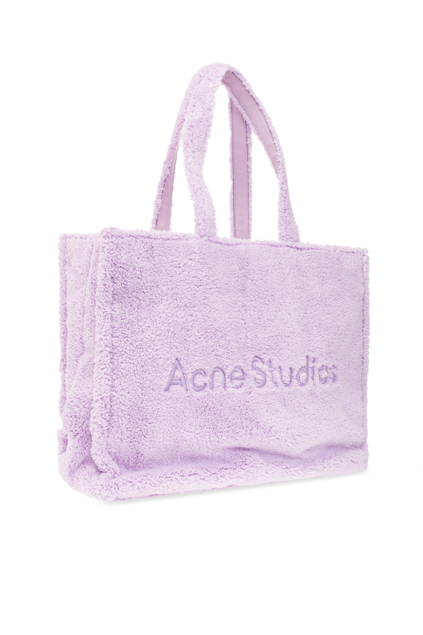Purple shopper bag from Acne Studios. Trimmed with fleece, this model is complete with a logo embroidery, two half-round handles and one internal compartment with one slip pocket and one zip pocket.