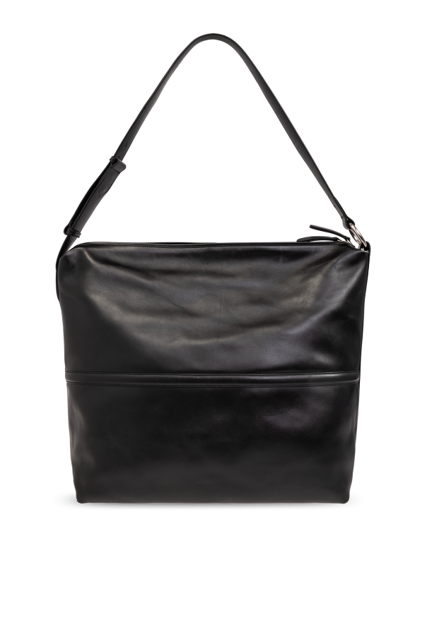 Black travel bag from Dries Van Noten. Made of leather, this design features a two-way zip, embossed logo, adjustable strap, silver-tone metal hardware and one internal compartment with one zip pocket.