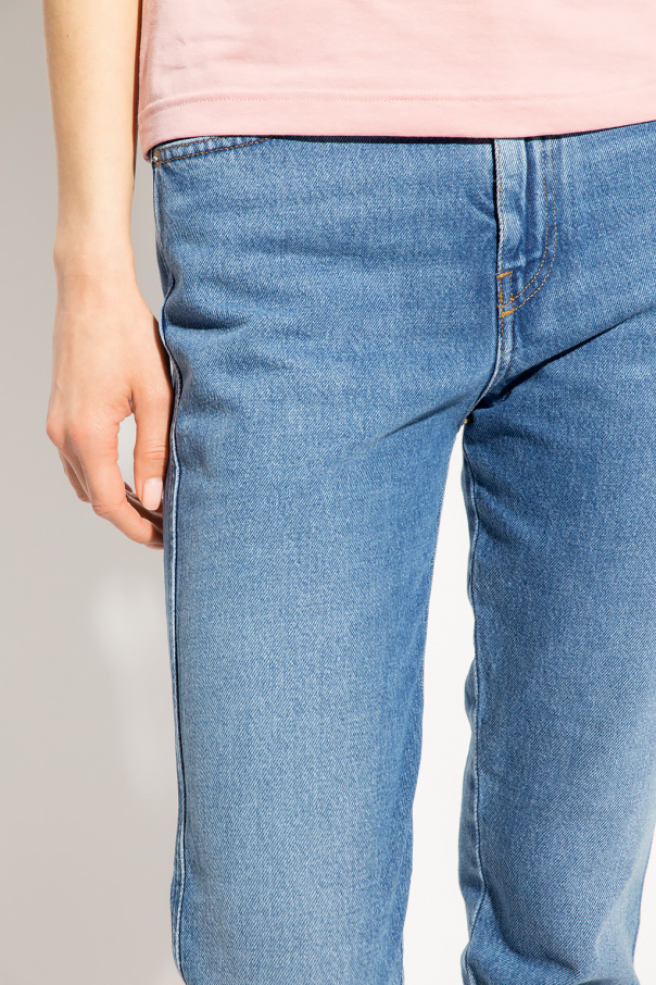 Light blue ‘1994’ jeans from Diesel. Cut with a high-waisted silhouette, this pair features a zip fly with a button, classic five pockets, distressed detailing and straight legs.