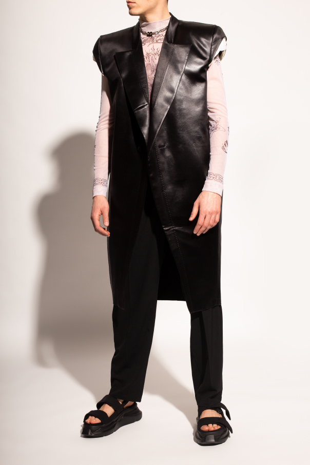Black platform sandals from Rick Owens DRKSHDW. Fastened with velcro, this pair features decorative stitching details and a black rubber sole.
