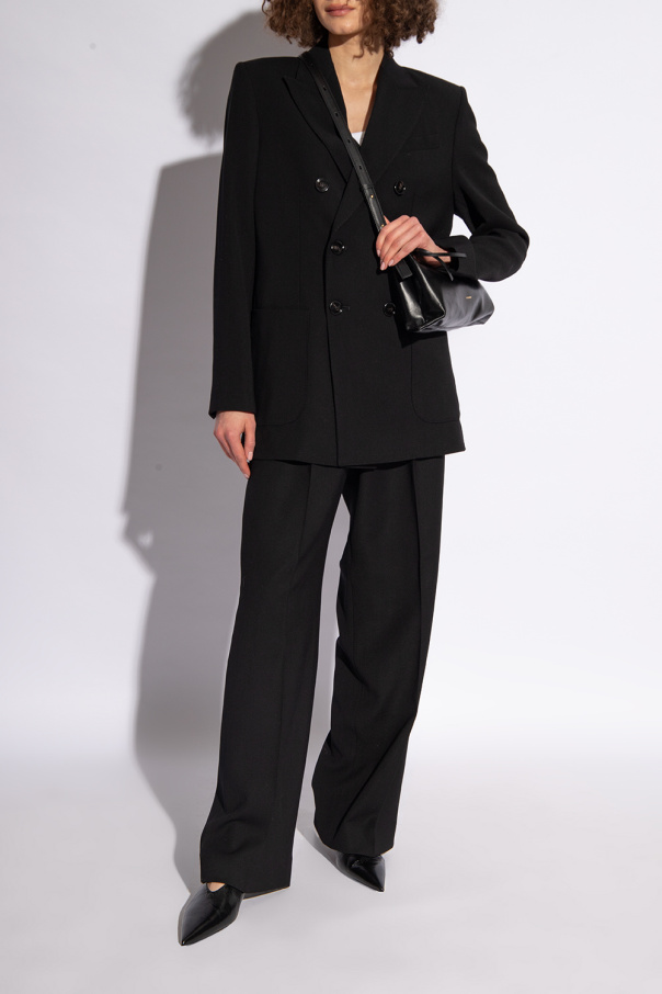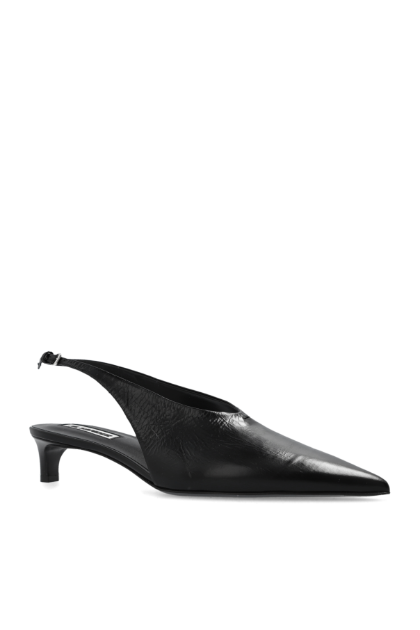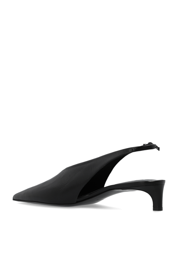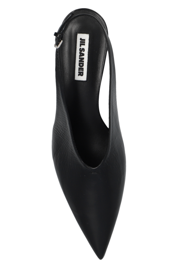 Black slingback pumps from JIL SANDER. Made of leather with a cracked effect, this pointed toe pair features a silver-toe buckle and a black leather sole.