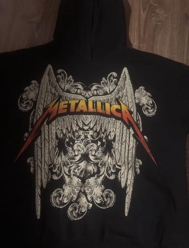 Худи темно серого цвета с принтом Metallika с Bershka, замеры : ширина плеч - 65; длина - 70;рукав - 53