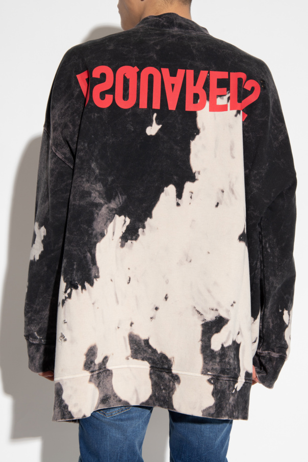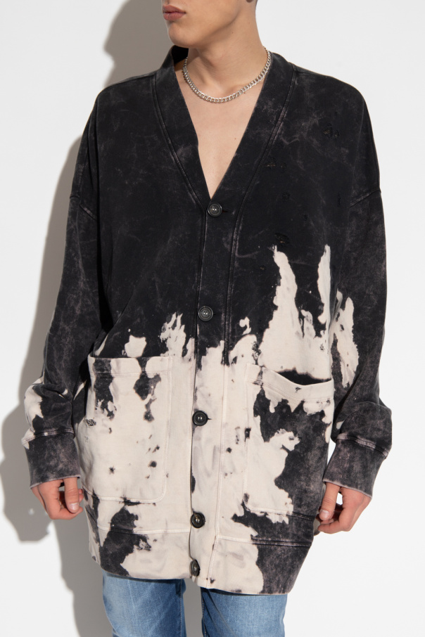 Grey, black and cream cardigan from Dsquared2. Crafted from tie-dyed cotton with a vintage effect, this style features an oversize fit, button fastenings, two frontal pockets and an elasticated bottom hem and cuffs.