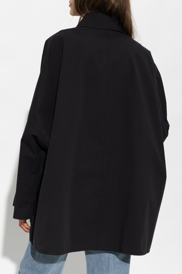 Black shirt-style jacket from Toteme. Crafted from organic cotton with an oversize fit, this item features snap fastenings, two flapped pockets and long sleeves.