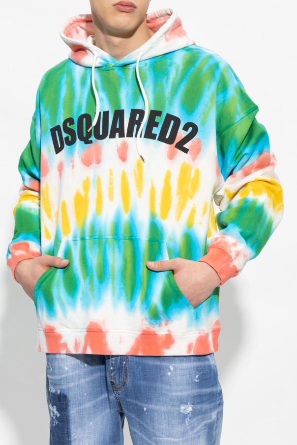 Multicolored hoodie from Dsquared2. Crafted from cotton, this design features a tie-dye effect, logo detail, slip pocket, drawstring hood and ribbed trims at the hem and cuffs.