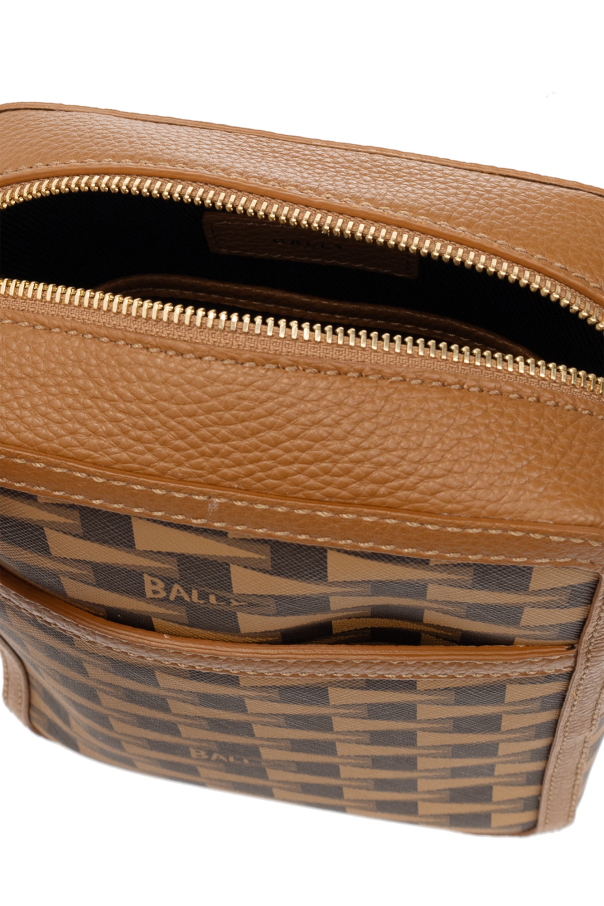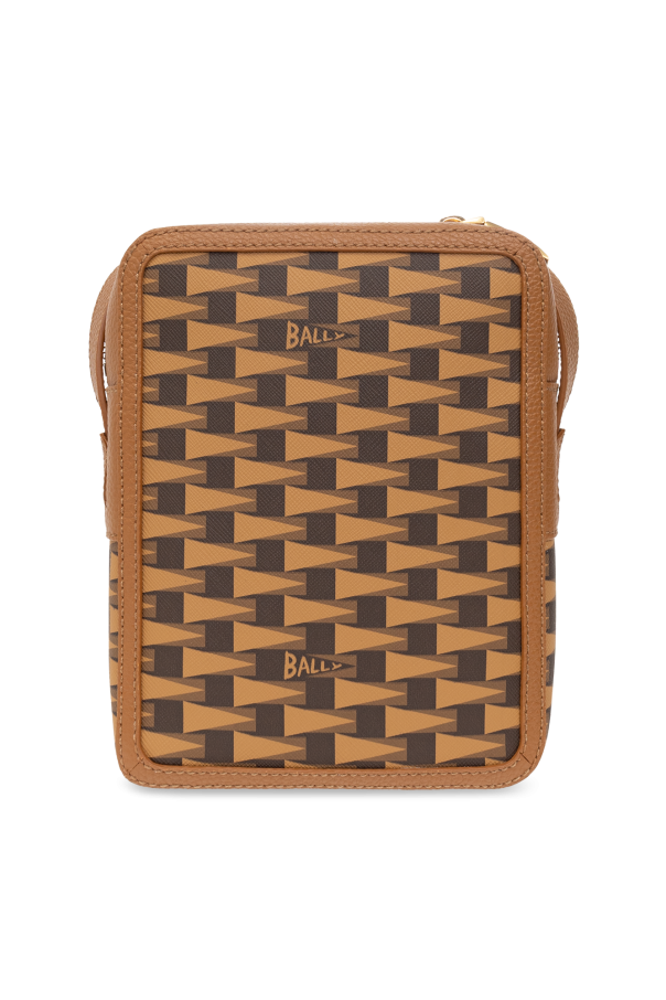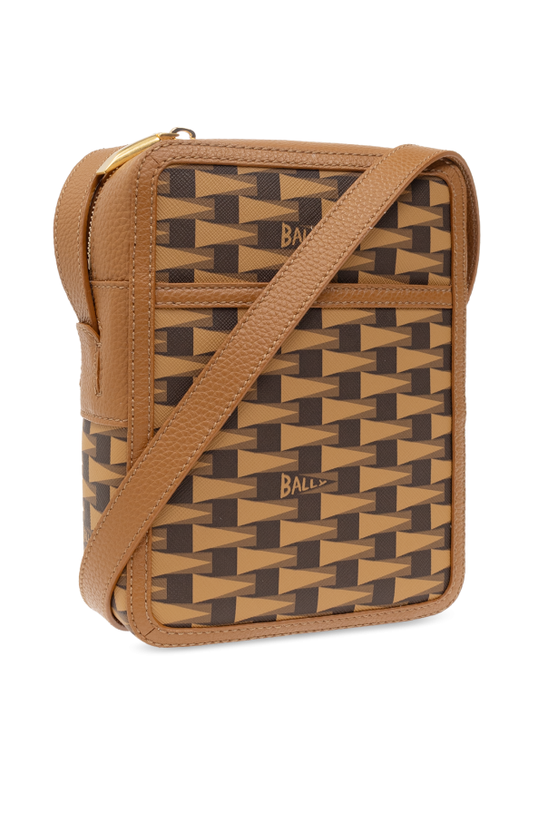 Brown shoulder bag from Bally. Crafted from coated canvas and leather, this item features a logo pattern, a zip fastening, one front slip pocket, an adjustable shoulder strap and an internal compartment with one zip and one slip pocket. The design is complete with gold-tone metal hardware.