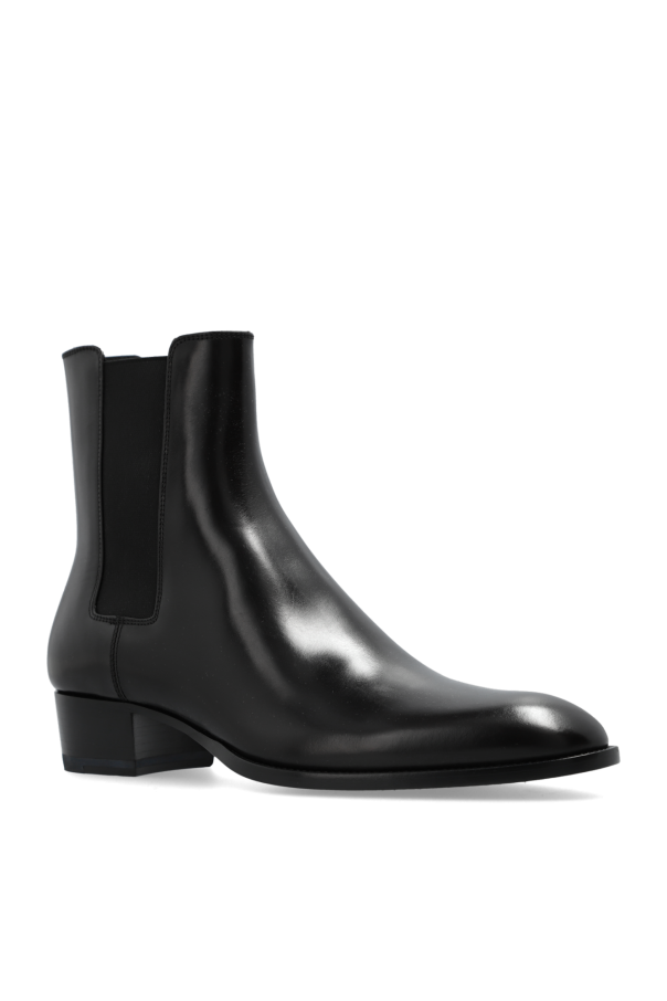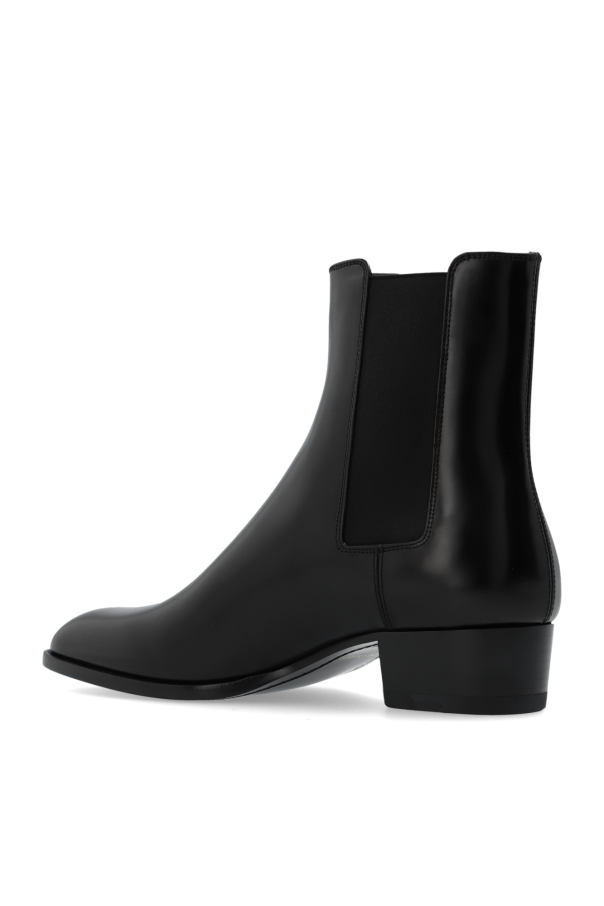Black ‘Wyatt’ heeled Chelsea boots from Saint Laurent. Made from smooth calf leather with a round toe, this model sits on a black leather sole and features elastic panels on the sides.