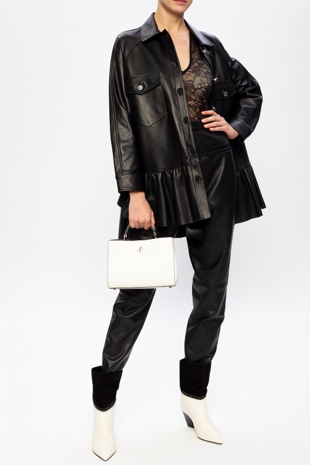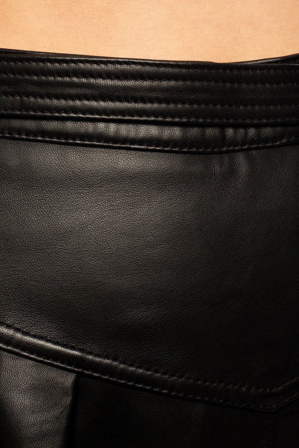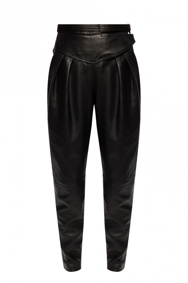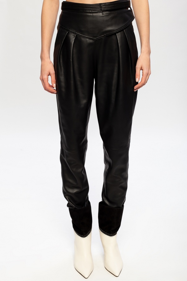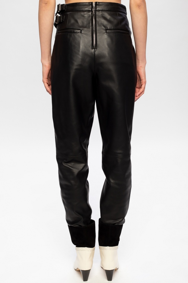 Black trousers from Red Valentino. Crafted from lamb leather, this tapered leg design features a zip fastening, two buckle straps, two front pockets, two back pockets and zip details.