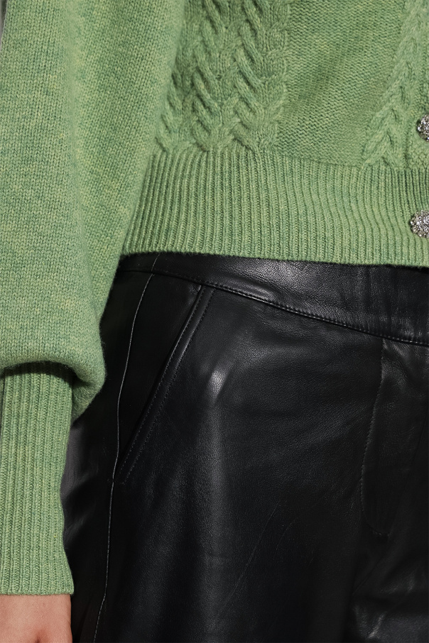 Black ‘Emma’ high-waisted trousers from Notes Du Nord. Crafted from lamb leather, this pair features a zip and two metal hooks, two front pockets, white logo patch at the back and straight legs.