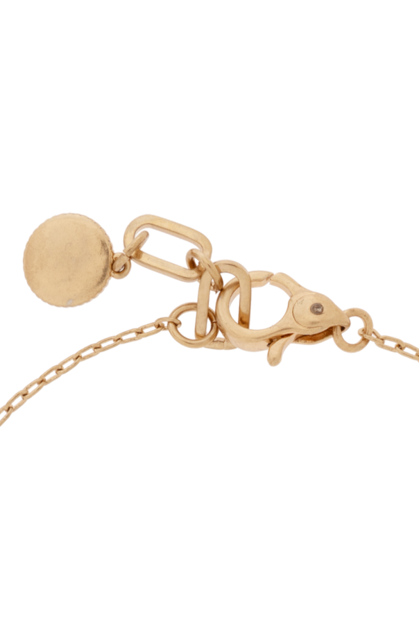 Gold-tone bracelet from AllSaints. Made of brass, this item features decorative charms and an adjuster with a logo-engraved pendant.