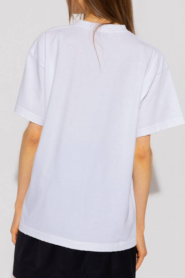 White T-shirt from Balenciaga. Crafted from cotton, this short sleeve design features a black logo print, vintage effect and ribbed crew neck.