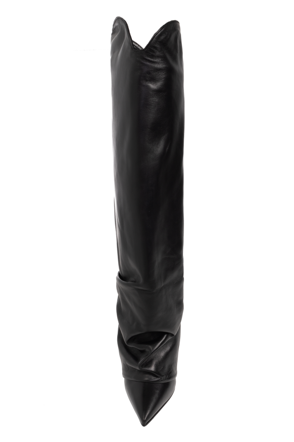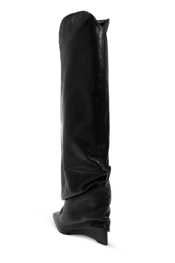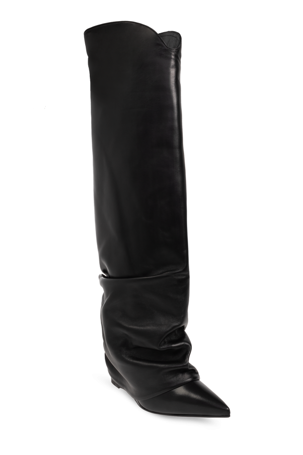 Black ‘Andy’ wedge boots from Le Silla. Made of leather, this slip-on pair sits on a black rubber sole and features gathers at the upper and a pointed toe.