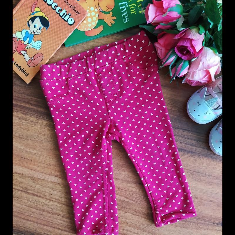 Трикотажные двунитка красные с сердечками лосины, посадка под памперс.