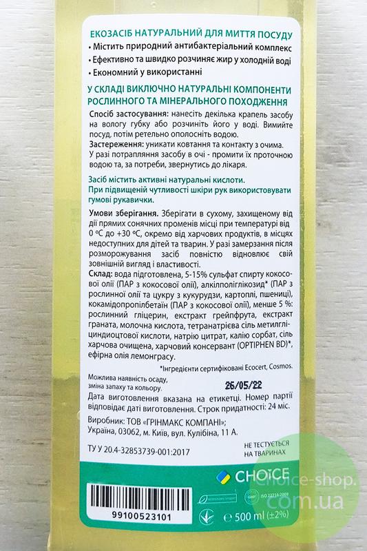 ECOсредство натуральное для мытья посуды ТМ GREEN MAX (500 мл) с экстрактом
