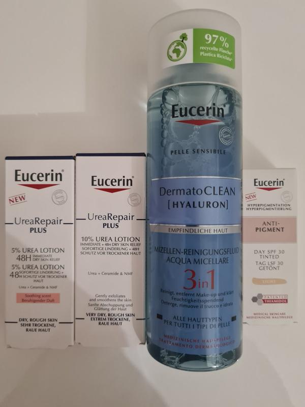 При покупке образцы ухода в подарок!Для всех типов кожи Мицеллярная вода 3-в-1 Eucerin DermatoCLEAN [HYALURON] – это мягкое, но эффективное средство для очищения кожи, которое удаляет загрязнение и макияж с лица и глаз, не пересушивая кожу. Она сочетает очень мягкий очистительный комплекс с гиалуроновой кислотой и другими природными увлажняющими компонентами, чтобы помочь коже поддерживать естественный баланс влаги. После использования кожа остается чистой, ухоженной и нежной. Клинически и дерматологически подтверждено, что мицеллярная вода 3-в-1 Eucerin DermatoCLEAN [HYALURON] — быстрое и удобное очищающее средство, которое подходит для всех типов кожи.