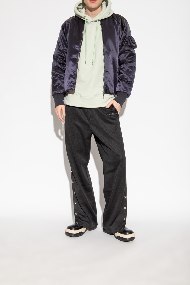 Black and beige Chelsea boots from Lanvin. Made of leather, this model sits on a black rubber sole and features a distinctive toe and elastic panels accompanied by an embossed logo on the sides.