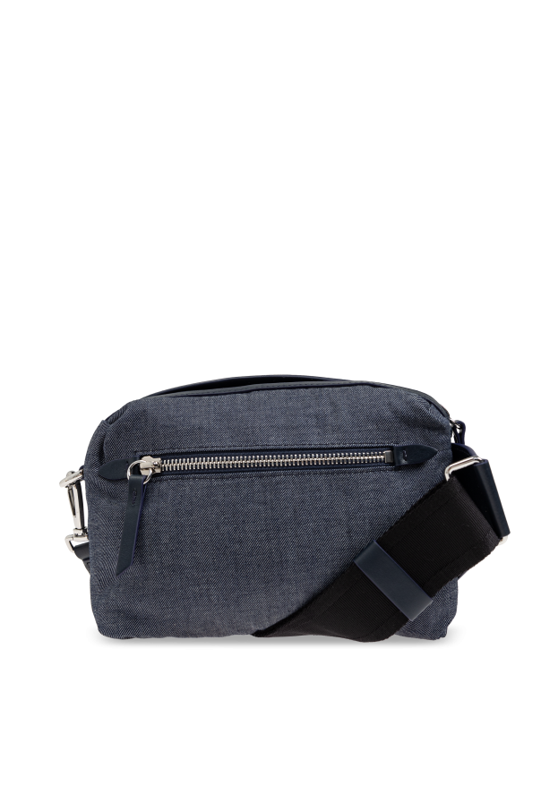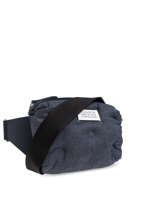 Introducing the Maison Margiela Belt Bag, a paragon of refined sophistication from a revered fashion collection. This meticulously crafted piece boasts a rectangular shape and a compact size, making it a versatile accessory for both waist and shoulder wear. Constructed from a luxurious, navy blue fabric with a subtle sheen and texture, this bag epitomizes minimalist elegance. The fabric, likely high-quality cotton or similar material, features a subtle, uniform pattern that enhances its exclusive appeal. The front of the bag is adorned with a distinctive white label bearing numbers from 0 to 23, with the number 11 accentuated—an iconic hallmark of Maison Margiela. The bag is also equipped with a broad, adjustable black strap and robust metal hardware, including carabiners and zippers. The visible, well-crafted zipper on the back underscores the meticulous attention to detail. Inside, the main compartment and an additional back pocket offer ample storage, both secured with high-quality zippers. The interior showcases a refined finish with the \"Maison Margiela\" inscription on the inner lining. Why Choose This Product? Exquisite design from the prestigious Maison Margiela collection. High-quality materials with a refined, elegant finish. Versatile unisex accessory suitable for both men and women. Ample storage with a main compartment and an additional back pocket. Signature Maison Margiela branding with the distinctive number label.