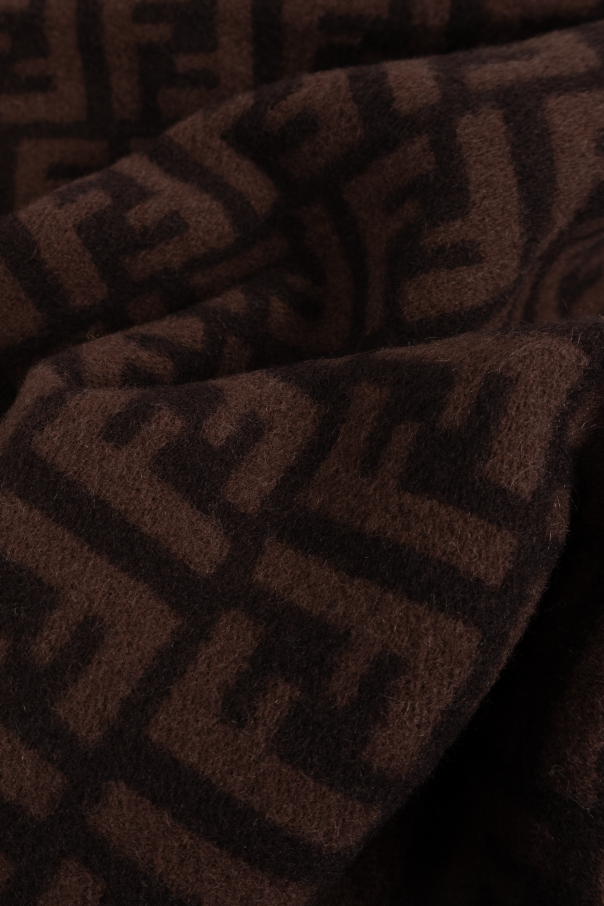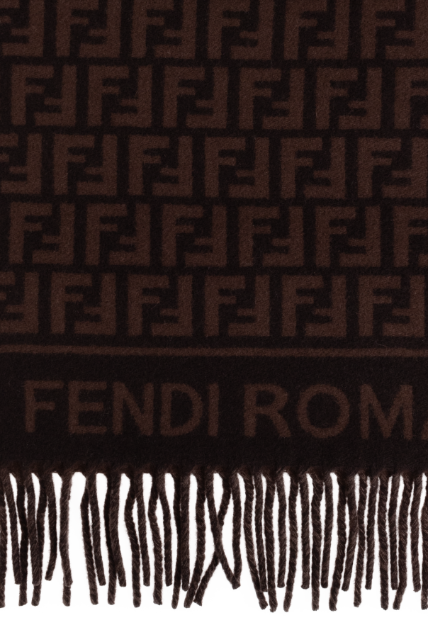 Introducing the Monogram Scarf from the esteemed fashion house Fendi. This exquisite accessory epitomizes the harmonious blend of luxury and timeless elegance. Crafted from a superior fabric blend of wool and cashmere, it offers both warmth and sophistication. The scarf is predominantly in a deep brown hue, adorned with the iconic repeating \"F\" monogram that is synonymous with Fendi\'s legacy. Adding to its allure, the scarf features the inscription \"FENDI ROMA\" on one end, highlighting its exclusive nature. Delicately finished with fringe, this piece is designed to elevate any ensemble, making it an indispensable addition to your wardrobe. Why Choose This Product? Exceptional craftsmanship from a renowned luxury brand. Luxurious blend of wool and cashmere for ultimate comfort. Unique monogram design that is both classic and contemporary. Perfect accessory to enhance your style with a touch of elegance.