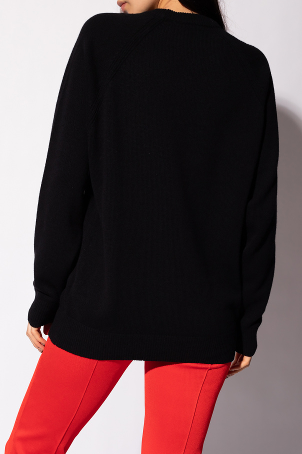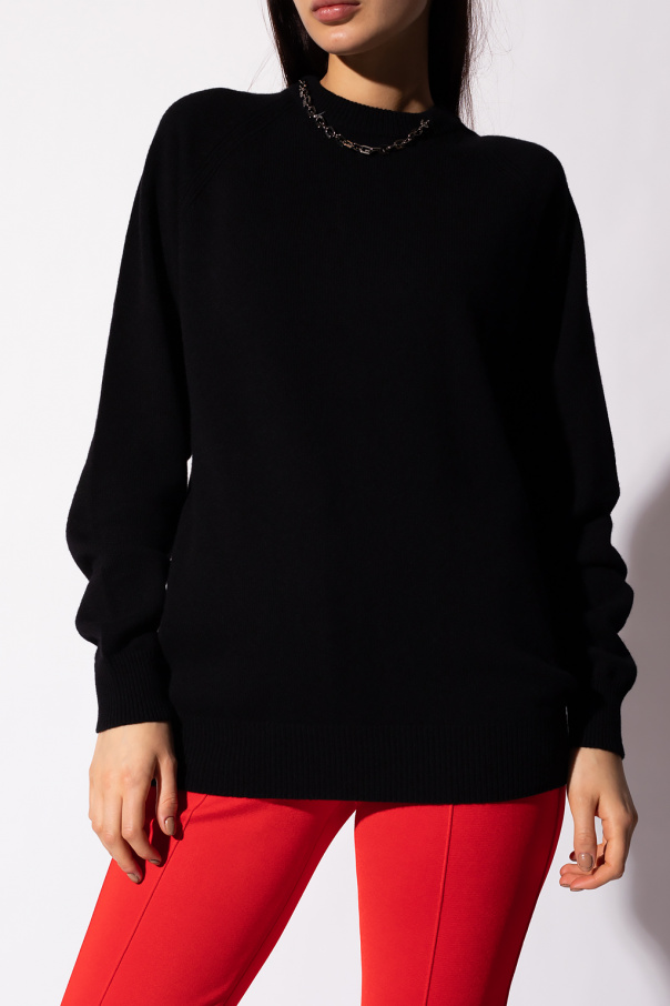 Black sweater from Givenchy. Made of cashmere, this design features a logo embroidery, ribbed trims and a round neck with a decorative silver-tone chain.