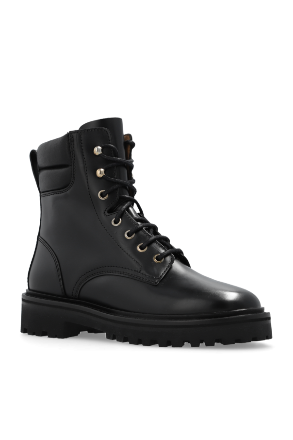 Black ‘Campa’ ankle boots from Isabel Marant. Made of calf leather, this lace-up pair rests on a black rubber sole.