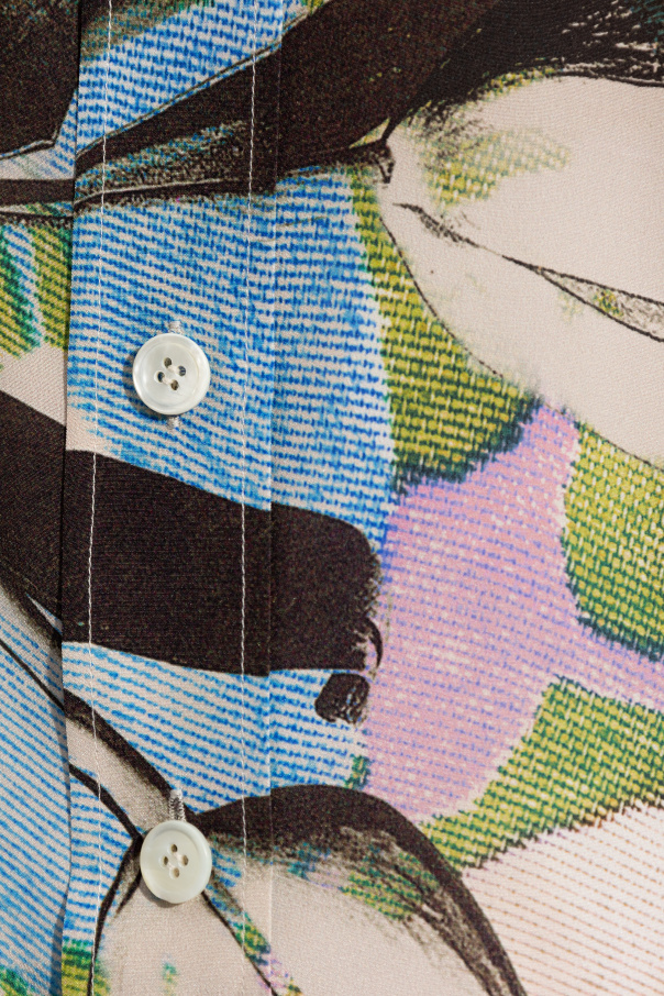 Introducing an exquisite addition to your wardrobe: the Long-Sleeve Silk Shirt from the esteemed collection of Paul Smith. This shirt, a testament to the fusion of art and fashion, features a vibrant, nature-inspired pattern with floral and botanical motifs. The palette of yellow, green, orange, pink, with hints of white and black, creates a visually arresting design that is both versatile and striking. Crafted from the finest silk, the shirt exudes a subtle sheen that enhances its luxurious feel. Its classic construction includes a collared neckline, a buttoned front with pearl-like buttons perfectly complementing the multicolored pattern, and buttoned cuffs, adding a touch of elegance to the overall design. The presence of a flat pleat at the front signifies the high-quality craftsmanship and attention to detail that are hallmarks of Paul Smith\'s exclusive fashion lines. With its high-quality silk material and lack of visible branding, this shirt stands as a symbol of understated luxury. Its multicolored hues offer endless styling possibilities, making it a key piece for any outfit seeking to make a statement. Why Purchase This Product? Elegantly designed with a nature-inspired, multicolored pattern. Made from 100% luxurious silk, ensuring a premium feel and subtle sheen. Features classic details such as a collared neckline, buttoned front, and cuffs with pearl-like buttons. Exemplifies Paul Smith\'s commitment to high-quality craftsmanship and attention to detail. Offers versatility in styling, blending effortlessly with both classic and bold wardrobe elements.