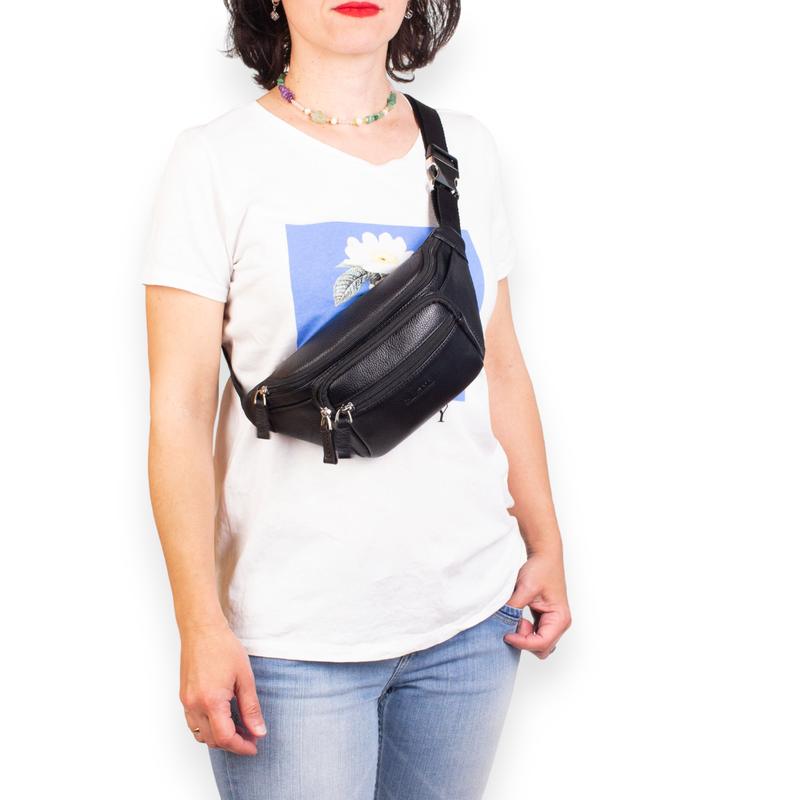 Удобная и вместительная мужская сумка-бананка на пояс из натуральной кожи.