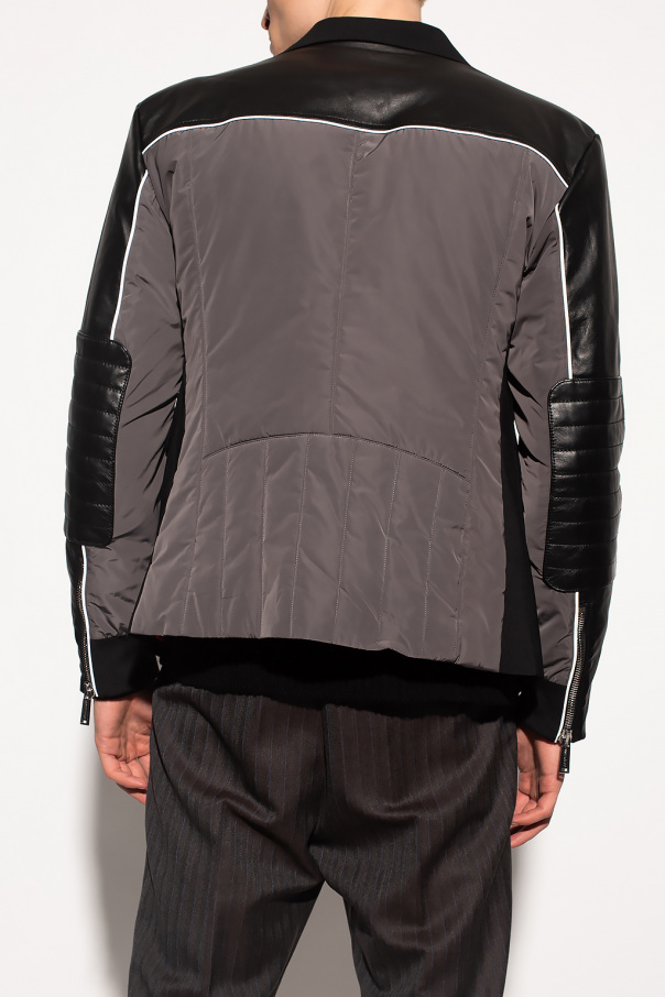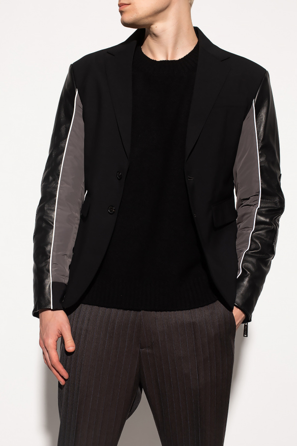 Black blazer in contrasting fabrics from Dsquared2. Made of wool, this garment features button fastenings, two flap pockets, one slip pocket and long sleeves with elasticated cuffs.