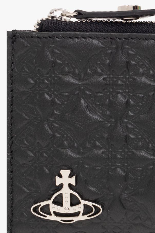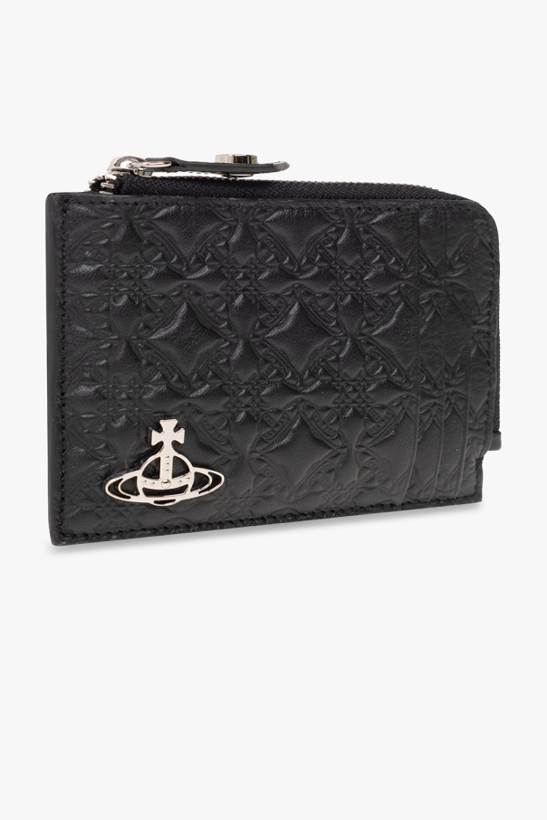 Black card holder from Vivienne Westwood. Made of cow leather, this item features an embossed geometric pattern, logo appliqué, ten card slots and one zipped internal compartment.