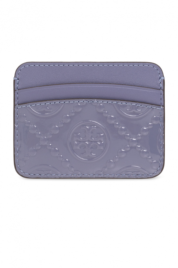 Purple ‘T Monogram’ card case from Tory Burch. Made of patent leather decorated with a raised monogram, this design features five card slots.