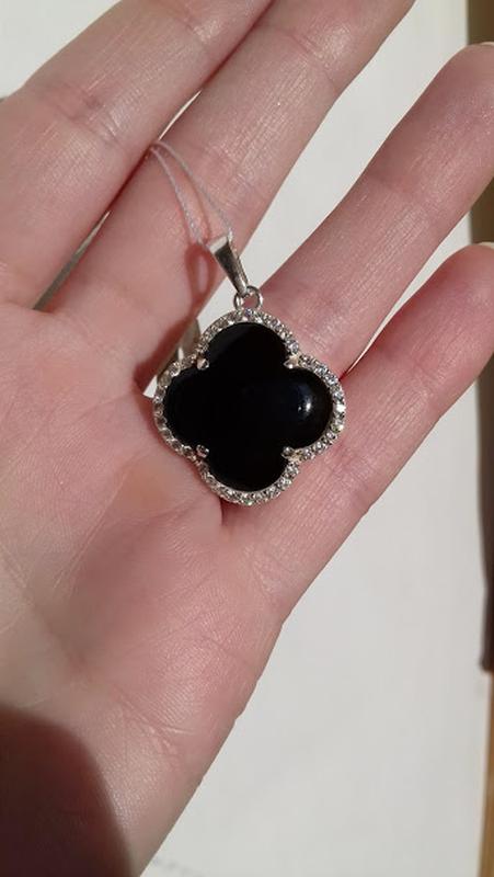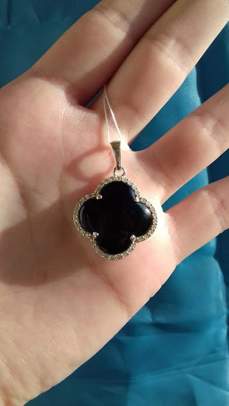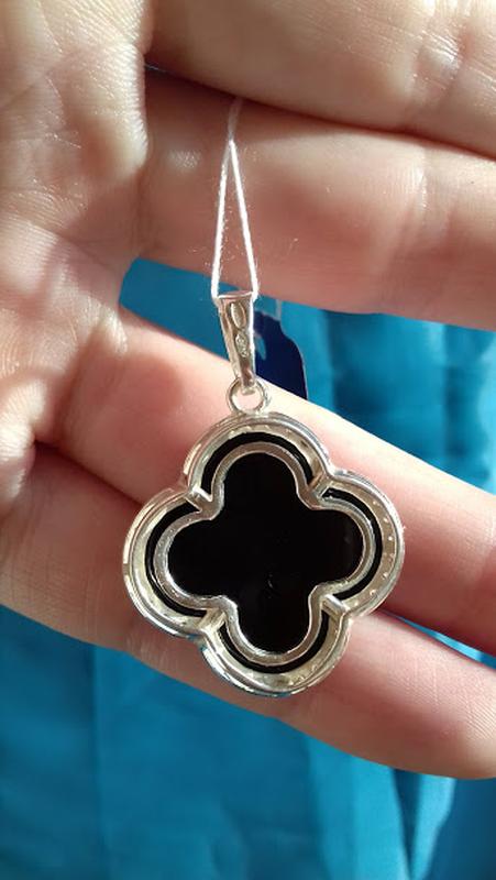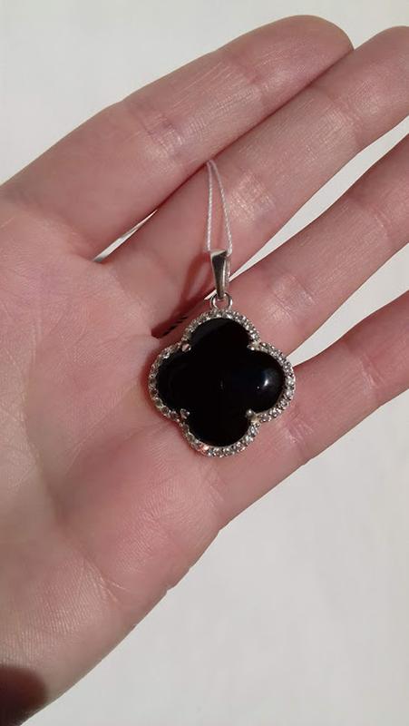 Серебряный подвес магический клевер с черным ониксом в стиле Ван Клиф.Вес изделия 4.9г вставки оникс и куб .цирконий.габариты 2,5 см,вместе с ушком 33мм.без родиевого покрытия.\\Кулон отлично дополнит комплект из сережек и кольца Клиф
