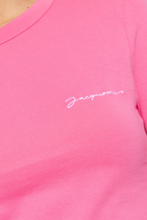 Pink crewneck T-shirt from Jacquemus. Crafted from organic cotton, this style features long sleeves and white logo embroidery on the front.
