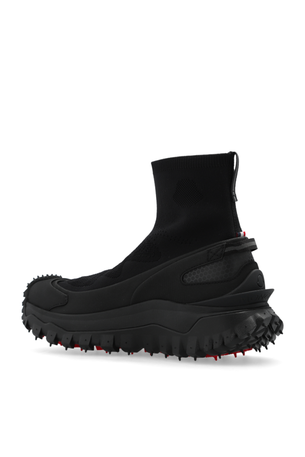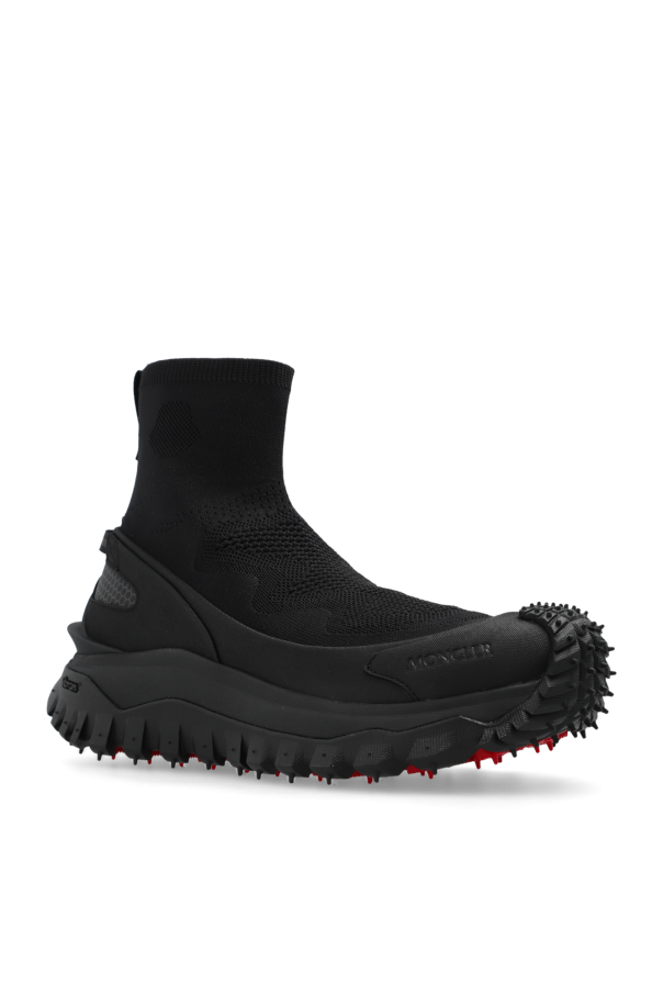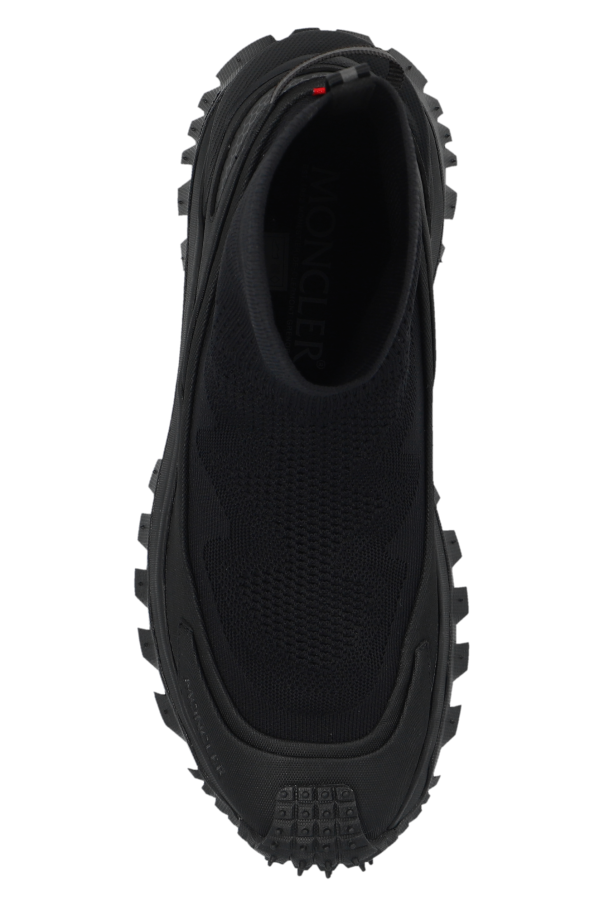 Black ‘Trailgrip Knit’ high-top sneakers from Moncler. Boasting a slip-on silhouette, this model sits on a black and red sole in Vibram® MEGAGRIP rubber and carbon fibre and showcases an EVA foam midsole, an OrthoLite®insole and the brand\'s logo.