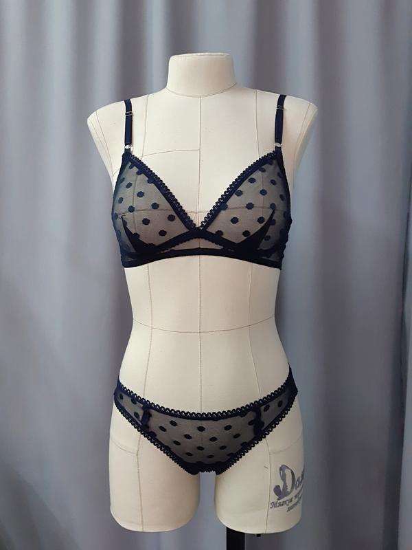 Зроблено в Україні?:Хендмейд ,Матеріал:Бавовна ,Модель трусиків:Сліпи ,Вид комплекту:З бюстгальтером ,Принт:У горох ,Опис