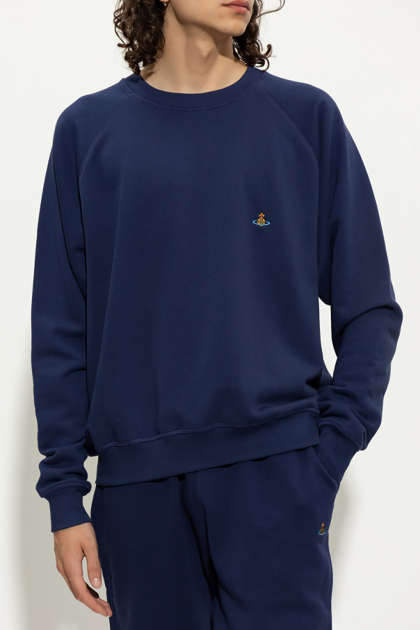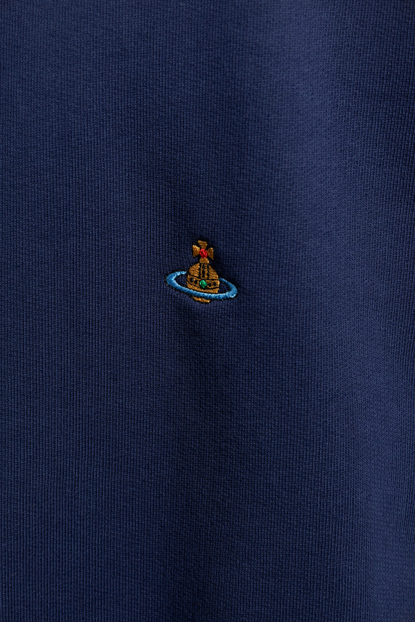 Navy crewneck sweatshirt from Vivienne Westwood. Made of organic cotton, this long sleeve design features a multicolored logo embroidery and ribbed trims at the neck, hem and cuffs.