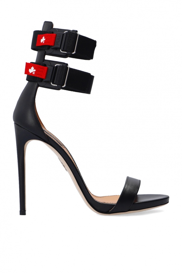 Black and red heeled sandals from Dsquared2. Crafted from leather, this pair sits on a beige leather sole and features magnetic closures around the ankle.