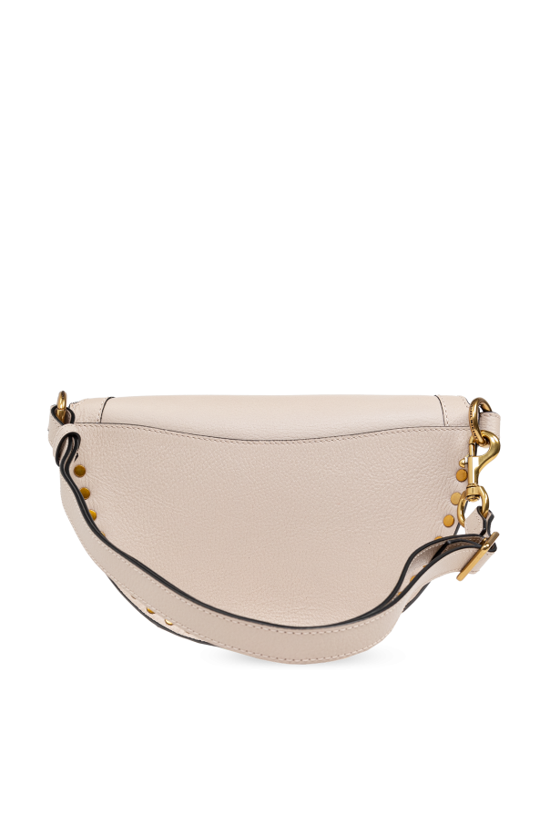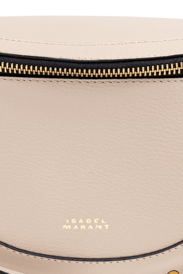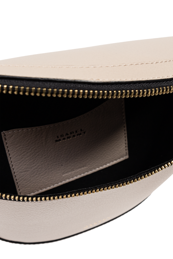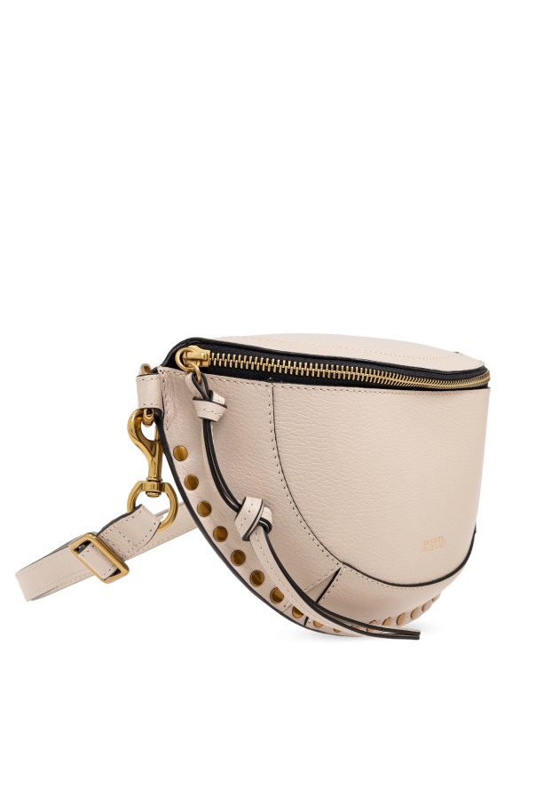 Introducing the ‘Skano’ Belt Bag by Isabel Marant, a paragon of elegance and functionality. Crafted from 100% high-quality leather, this accessory boasts a unique crescent shape and a subtle texture that exudes sophistication. Its light beige hue is complemented by exquisite gold-tone hardware, including a secure zipper closure, decorative studs that encircle the front perimeter, and an adjustable strap that ensures a perfect fit. The Skano is not just about its alluring aesthetics; it’s designed for convenience and style. The inside features a contrasting dark leather pocket, adding an element of surprise and practicality to its sleek design. A delicately embossed logo above the zipper and a subtle gold logo on the front further enhance its exclusivity, making it a must-have accessory that transitions seamlessly from day to night. Why Choose the ‘Skano’ Belt Bag? Unparalleled Craftsmanship: 100% premium leather construction with meticulous attention to detail. Distinctive Design: Crescent shape with gold-tone accents and decorative studs for a touch of glamour. Versatility: Suitable for everyday wear and special occasions alike. Functionality: Features an internal pocket for added utility, keeping essentials secure and organized.