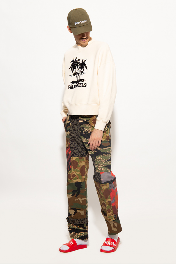 Red slides from Palm Angels. Resting on a red rubber sole, this pair is decorated with a white logo print.