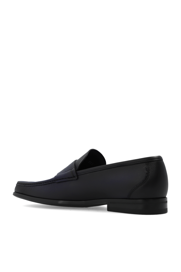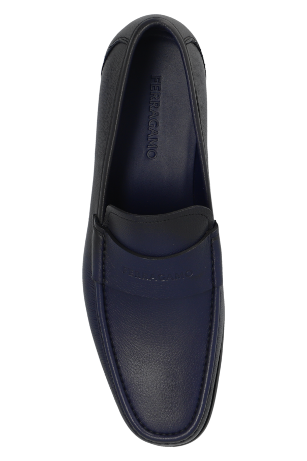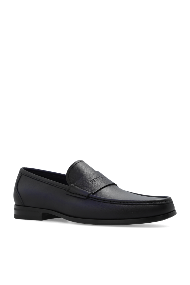 Black ‘Dupont’ loafers from FERRAGAMO. Made of leather, this model sits on a black rubber sole and showcases an embossed logo on the front. Extrawide insole.