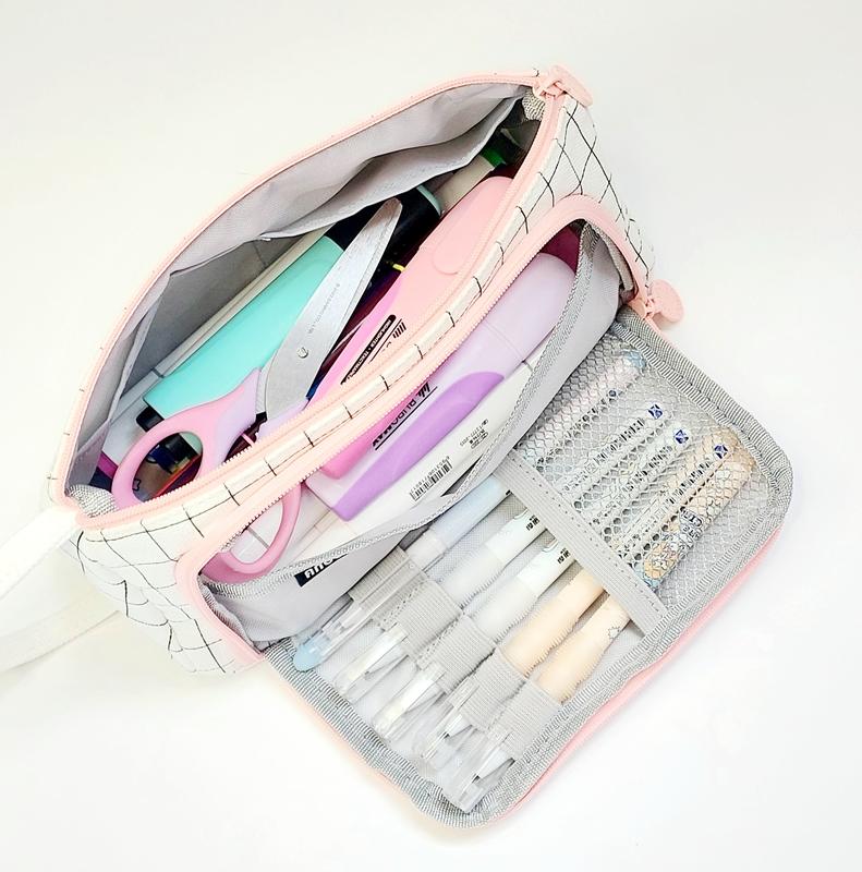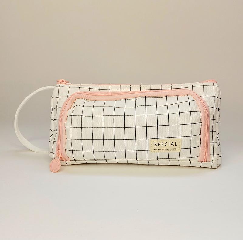 Пенал из плотной текстильной ткани на два отдела с ручкой. Если вы ищете удобный пенал, в который можно будет сложить все ваши канцелярские сокровища, то этот пенал – отличный вариант. В зависимости от выбранного варианта в этой серии есть однотонные пеналы и клетку. Как школьный пенал, для студента или для любителей планирования и письменных практик - подойдет всем.