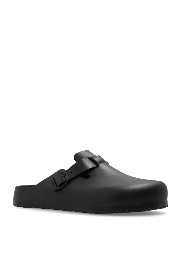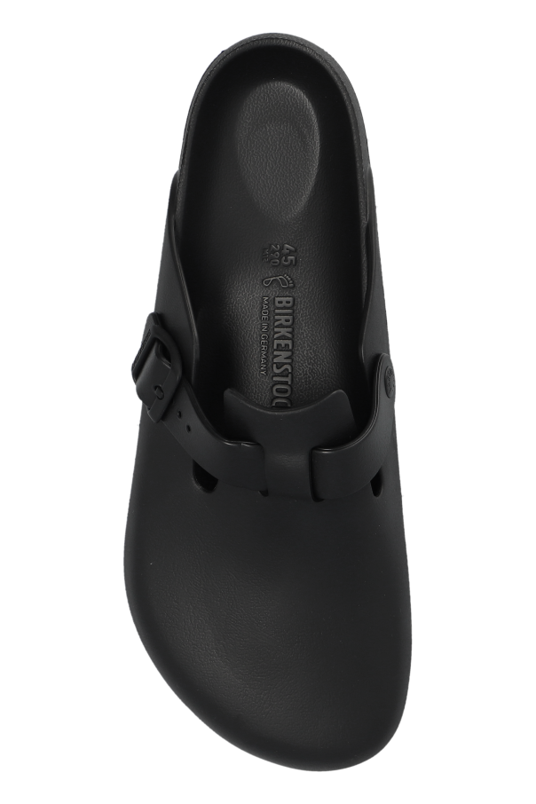Proudly presenting the Boston EVA slippers by Birkenstock, a harmonious blend of timeless design and modern functionality. Crafted from high-quality EVA rubber, these slippers offer unmatched lightness, flexibility, and ease of maintenance, ensuring comfort that lasts throughout the day. Their classic black hue epitomizes versatility, seamlessly transitioning from casual daywear to more sophisticated evening attire. The rounded front and open-back silhouette are quintessentially slipper, enhanced by an adjustable strap with a buckle atop for a perfect fit. The distinct logo on the side not only signifies the esteemed Birkenstock brand but also adds a touch of elegance. Moreover, the robust profiled sole provides additional cushioning and stability, making every step a pleasure, without the elevation of high heels. Why Purchase the Boston EVA Slippers? Timeless Aesthetic: The classic black color and refined design ensure these slippers never go out of style. Supreme Comfort: Constructed entirely from EVA foam, from the outer layer to the sole, for ultimate comfort and durability. Versatile Wear: Effortlessly pairs with both casual and elegant outfits, proving its versatility. Brand Authenticity: The visible designer logo guarantees authenticity and represents quality craftsmanship. Enhanced Stability: The thick, profiled sole offers superior cushioning and stability, making walking a delight.