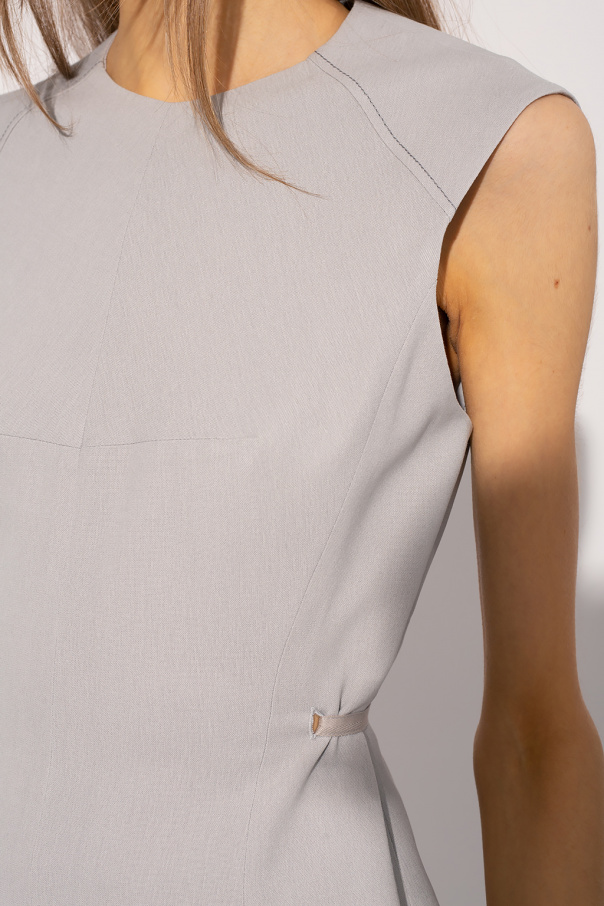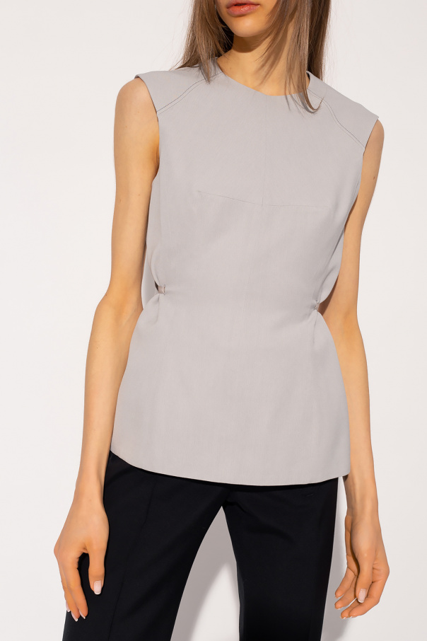 Grey sleeveless top from Jacquemus. This garment features an open back and adjustable strap with a hook closure at the back.