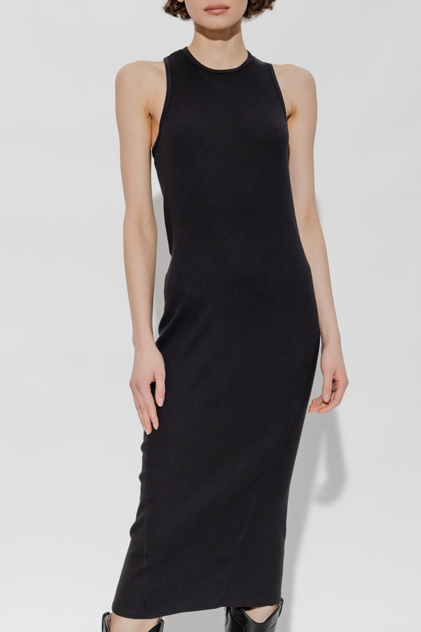 Black sleeveless dress from Rag & Bone. Crafted from cotton with a ribbed texture, this style features a round neck.