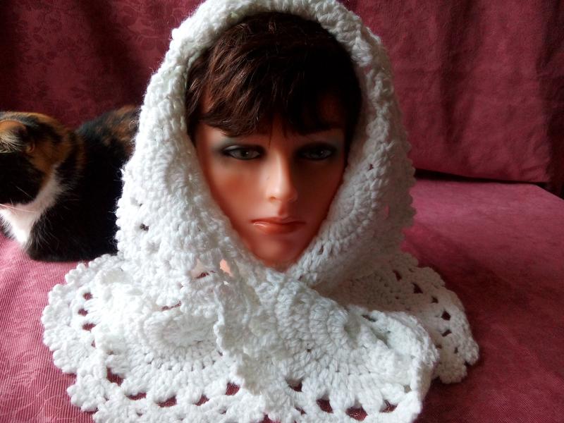 Ажурный суд крючком.Акрил.Универсальный цвет.Можно использовать как головной убор или как воротник.Хорошо держит форму.Нарядный.
